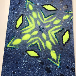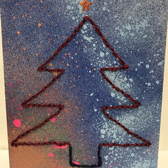 Watercolor paper · Acrylic paint · Embroidery thread · Spray paint · Washi tape