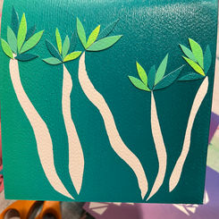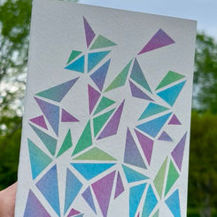 Each card is handmade for someone I love, usually for a sweet life moment. Color and shape are my love languages. I enjoy experimenting with rolling out varying paint combinations and unexpected layering to bring texture and punch.